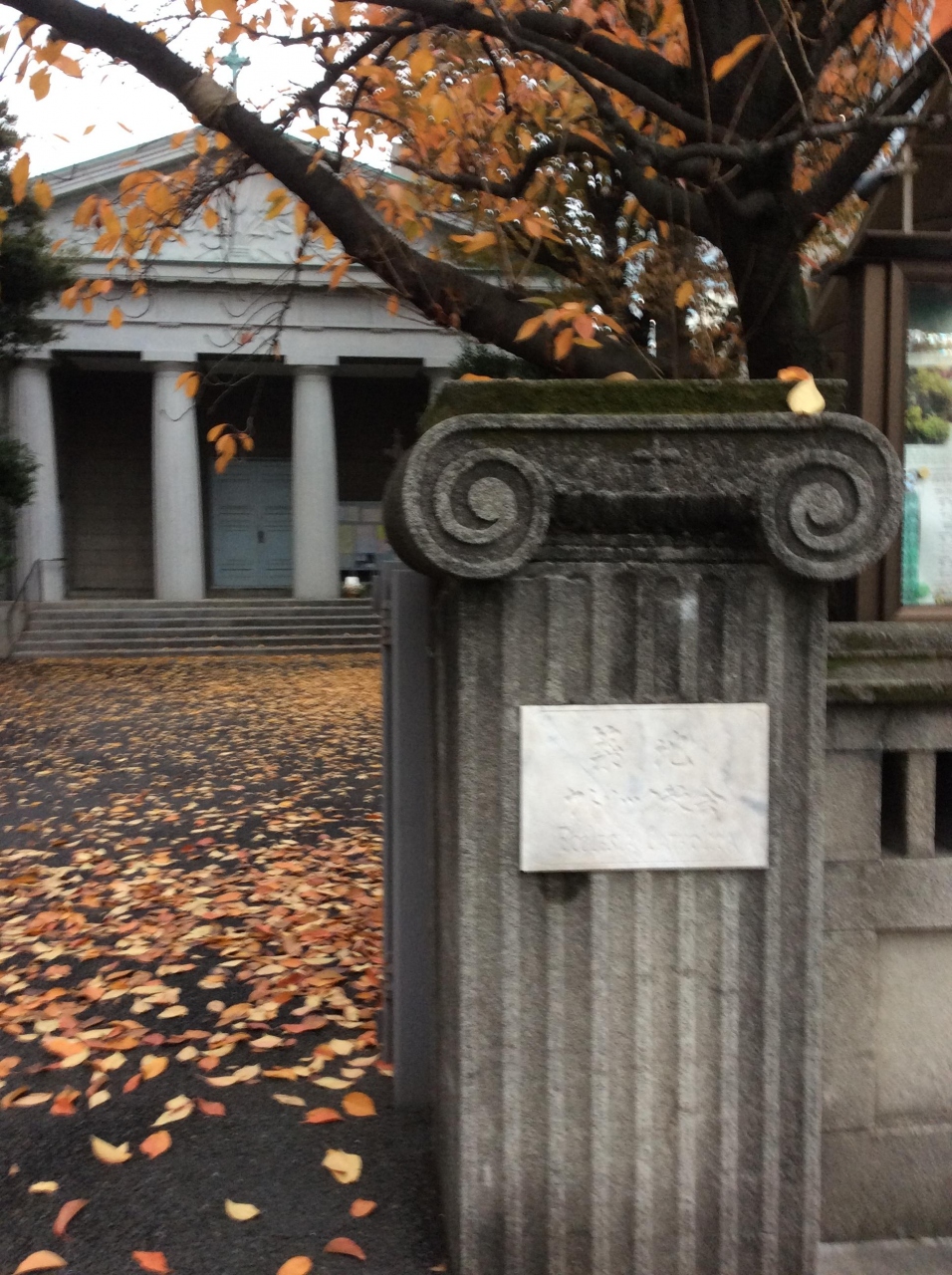 明石幼稚園、小学校の道を挟んで前にある教会です。1874年外国人居留地跡に建てられた東京初のカトリック教会です。残念ながら当時の建物ではなく昭和になって再建されたものなので木造建築となっていますが、東京都の歴史的建造物に指定されています。