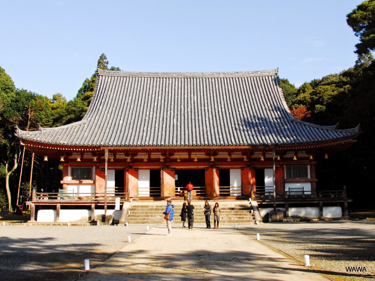 以下はオフィシャルサイトからの説明ですが、この金堂(国宝)は醍醐天皇の御願により平安時代の延長4年(926)に創建された建物で、永仁、文明年間に二度焼失し、現在の金堂は豊臣秀吉の命によって紀州(和歌山県)湯浅から移築が計画され、秀頼の時代、慶長5年(1600)に完成しましたものです。この金堂が、醍醐寺の中心のお堂であり、安置されている薬師如来坐像が醍醐寺の本尊です。