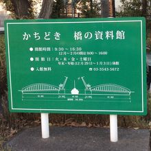勝鬨橋のたもとにあります。築地市場から歩いていきました。勝鬨橋が昔は開閉式であった事が分かります。そのため橋を開くための電力供給に使用していた変電所が昔あった場所を改修したのがこの資料館です。リアルタイムで開いているこの橋を見たくなります。