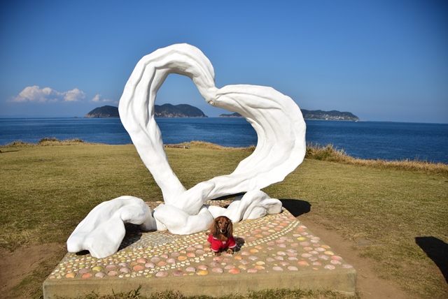 岬の広場の中には、『海中展望塔』、『恋人の聖地サテライトに設定されたモニュメント』、『灯台』があります。恋人の聖地サテライトに認定されたモニュメントはカップルに人気だそうで、私たちの前ではお若いカップルが写真撮ってました。