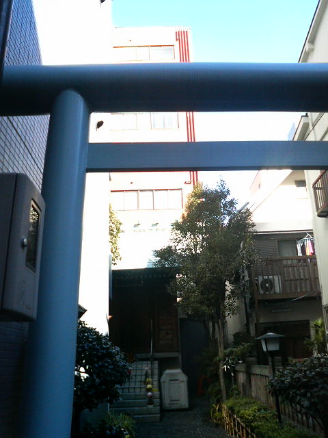 (ビルの脇の細い参道を進んだ先に本殿があり、あまり目立たない場所にある神社です)