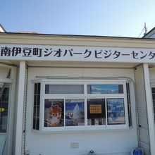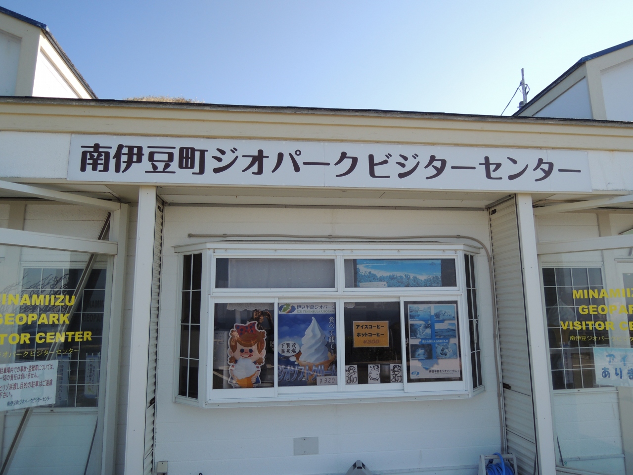 南伊豆町ジオパークビジターセンター内は小さいですがジオサイトの地図・写真パネルなどの展示されています。ここは絶景と夕陽の展望が出来る場所の一等地に建っていてとても風景のいいところです。駐車場も車を海側に停めればとても海との構図のいい写真が撮れてオススメですよ。