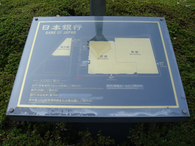 上空から観ると、建物の形が「円」になっているというのは知っていましたが、横から見ると、日本の中央銀行だけあって重厚感があり、また威圧感もあります。この日は休日でしたので人気がありませんでしたが、事前に見学の申し込みをすると、かつて使用されていた大金庫が見れるようです。また向かい側には無料で入場できる貨幣博物館がります。