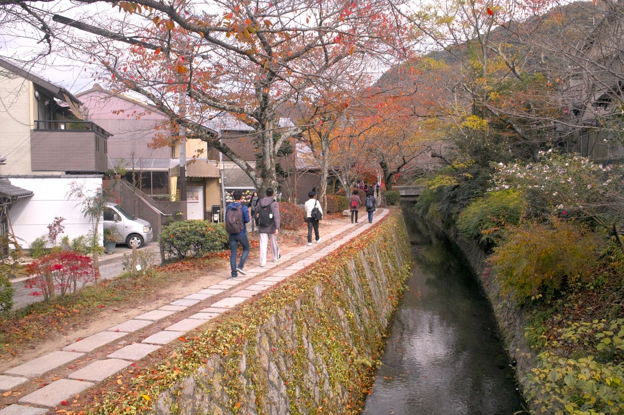 哲学の道は桜で有名ですが紅葉もそこそこ楽しめますね。今回は永観堂から法然院あたりまで歩いたのですが、道沿いに紅葉もあるし、途中の寺社や土産物屋などいろいろ見所があって飽きることがありません。それほど混むこともないようなので散策に最適ですね。