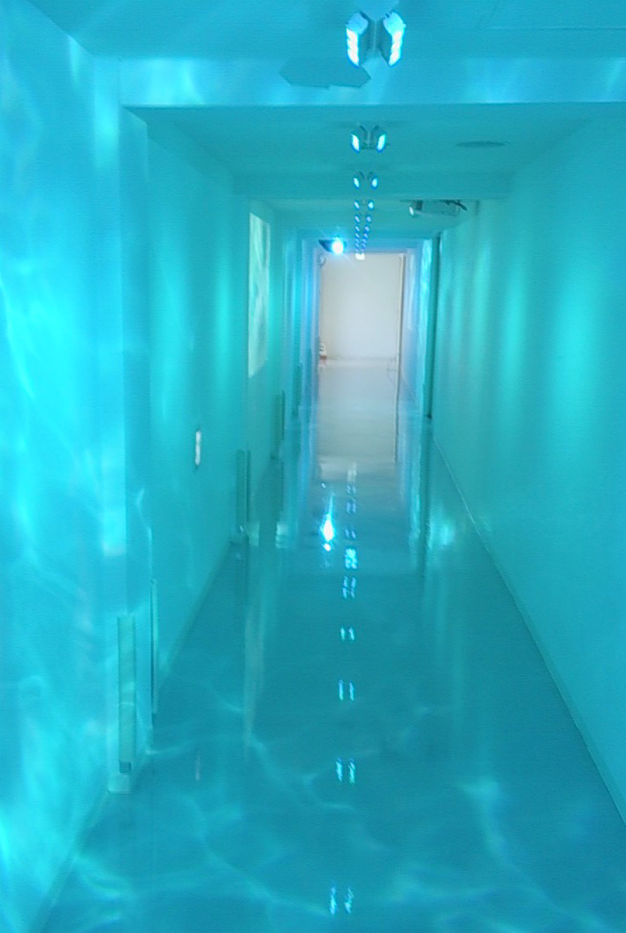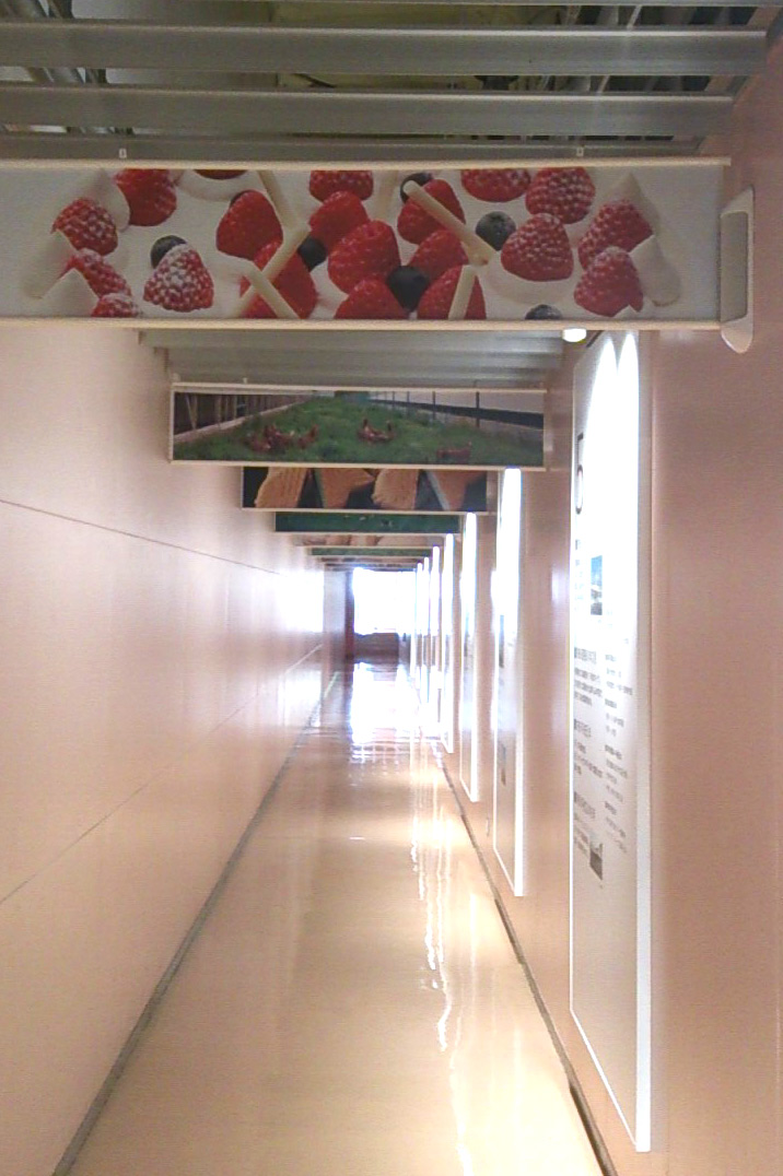 水をイメージした通路を通って機械で作っている様子を見学しながら進みます。