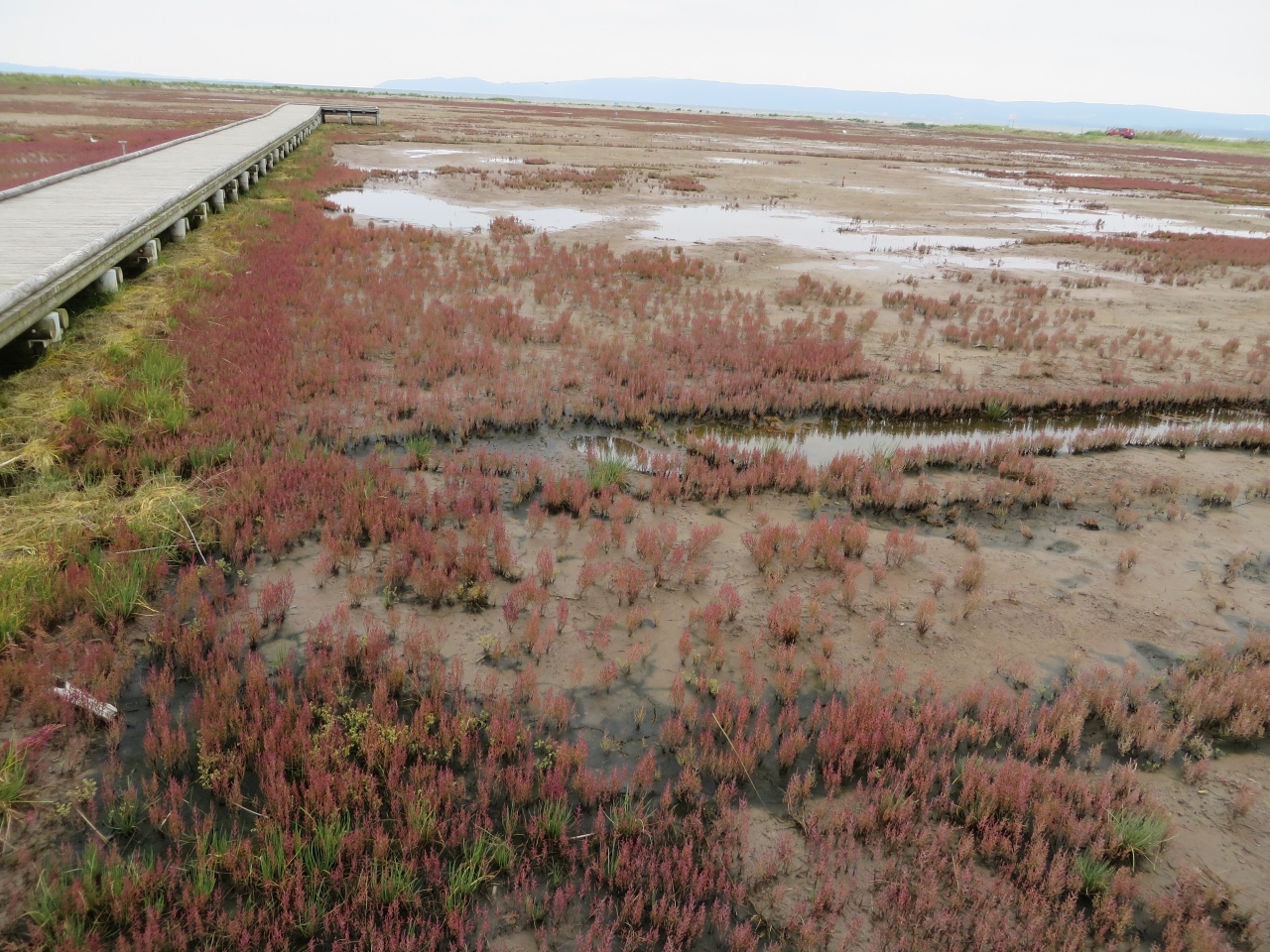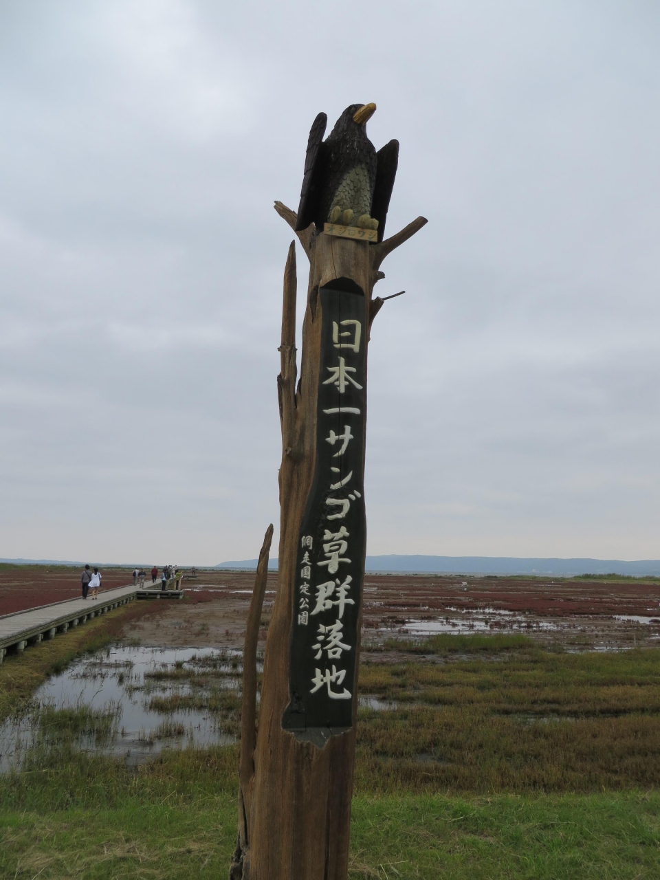 「日本一サンゴ草群落地」の看板も出ている、能取湖畔のサンゴ草群生地です。