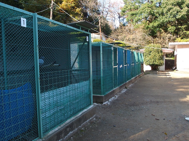 山に向かって進むと 檻がいくつもあります。
