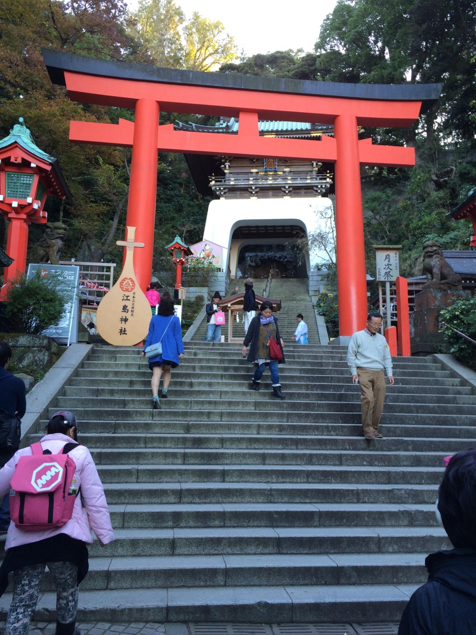 江島神社の参拝もよし、参道に建ち並ぶ「しらす」の食堂づくしもよし、プチお散歩にはとても良いスポットです。