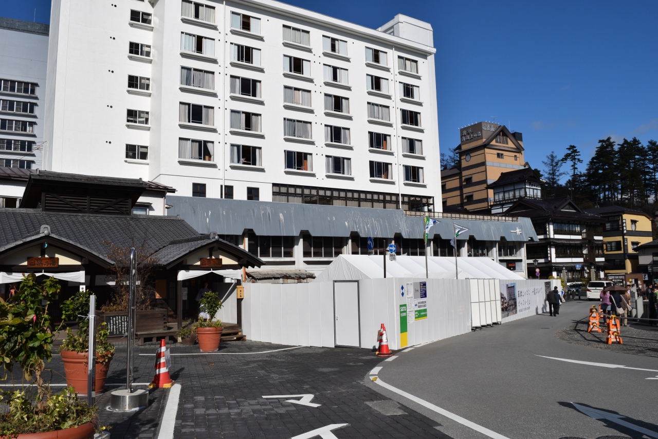 看板が貼ってあり、来年春まで工事らしいです。これから春にかけて出かける方は湯もみショーが見れないようです。