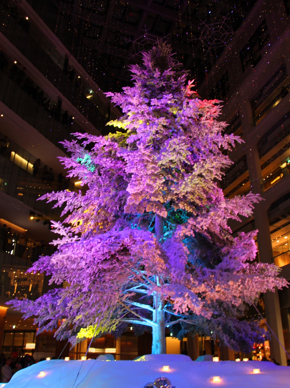 ライトアップによってクルクルと色の変わるツリーは見所満載。