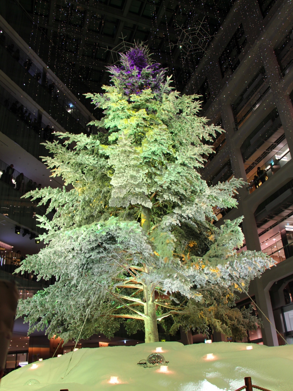 KITTEには大きなクリスマスツリーがあり、枝にはふんわりと雪が積もっている。