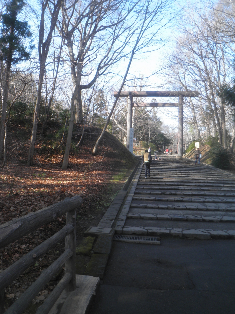 11月下旬に札幌円山にある北海道神宮をおとずれました。 天気がいいけど、けっこう寒くて、紅葉は終わって地面には落ち葉が降り積もっていました。 それでも、多くの参拝者が神宮を訪れていました。 円山にはおしゃれなレストランが多いので、食後に散策するカップルも多いようです。