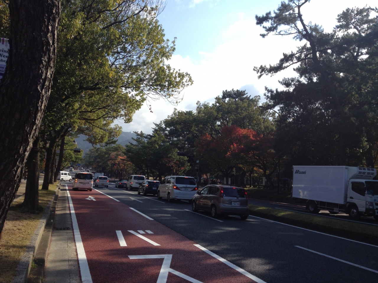 近鉄奈良駅から徒歩で向かって、奈良県庁を過ぎた辺りからポツポツと鹿が現れます。