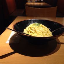 本当は稚加栄でお昼を食べたかったのですが、時間がなく、大濠公園近くのこのお店をテレビで見たので、ランチ閉店間際の1430に行きました。土砂降りにも関わらず、満席で少し並びましたが、5分で席につけました。日曜日はランチメニューがなく、看板のぺぺたまを注文しました。卵でペペロンチーノがまろやかになっているような味でしたが、私は分かりやすい味が好きなので。あまり好感は持ちませんでした。ただのシンプルなペペロンチーノのほうが好きな味です。また、1080円もする割には、サラダもドリンクもパンもつかないため、コスパが悪いなと思います。ただ、美味しくなくはないので、星2つです。