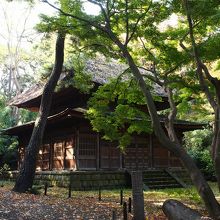 三渓園内の南側にあり、大きな合掌造りの旧矢箆原家住宅のすぐわきにひっそりとあります。旧矢箆原家住宅と何かかかわりがあるのかと思えば(雰囲気もなんとなく似ています)、こちらは鎌倉にある縁切り寺の仏堂でした。内部を見ることはできませんが紅葉の木々に囲まれた姿は風情があります。