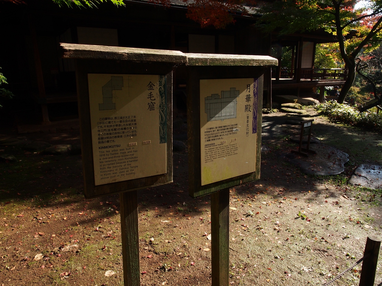 飛び石をつたって縁側から建物内部をのぞき見ることができます。決して華美ではありませんが美しいたたずまいの建物です。紅葉との組み合わせが素晴らしかったです。