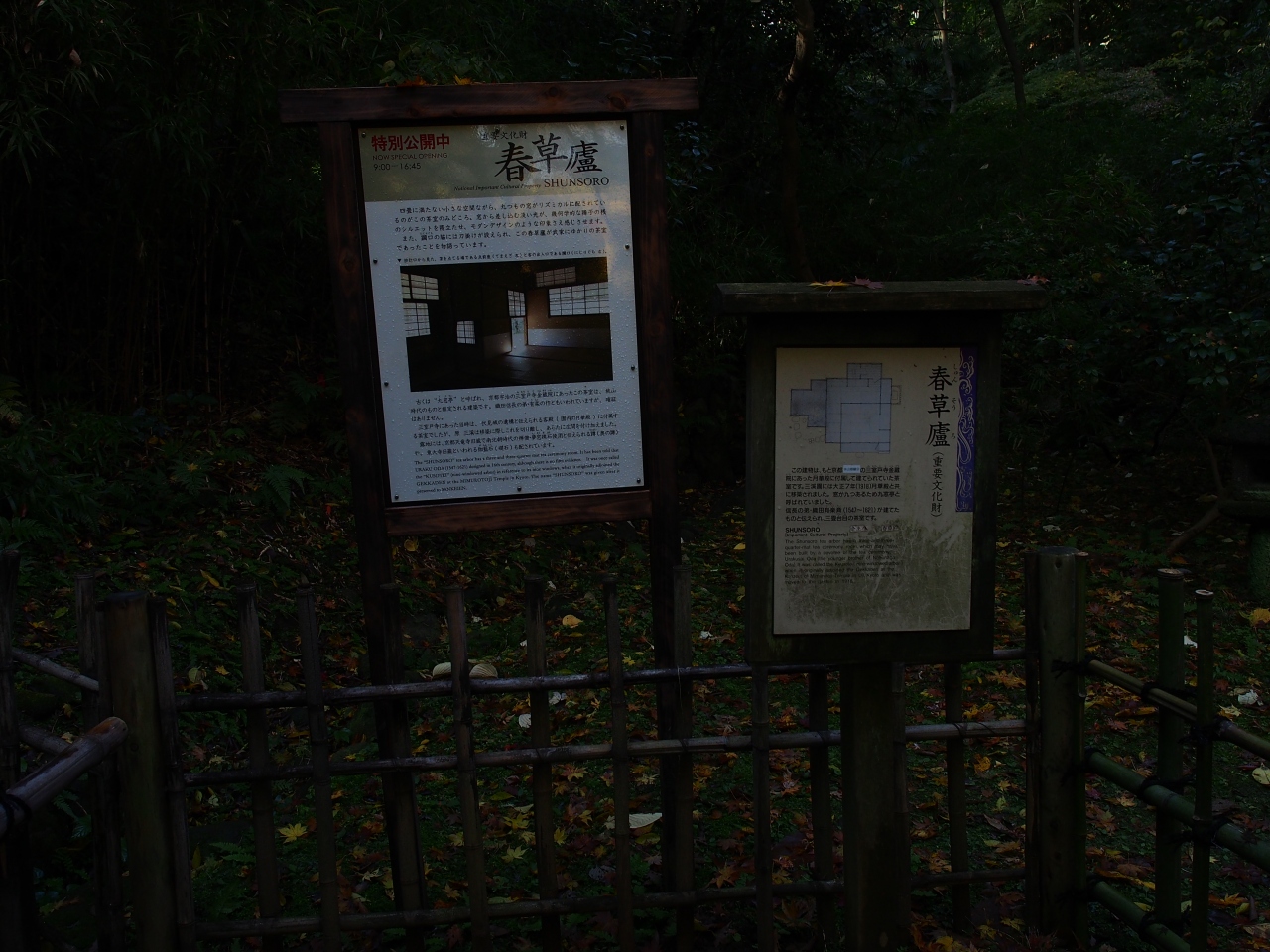 三溪園の内苑にある茶室です。いくつかの窓や入り口から内部をのぞき見ることができました。これが侘びさびなのか?変わった窓がいくつもあり、お茶を嗜まない自分には不思議な雰囲気の建築物です。ちょうどガイドの人が他の方を案内しているときで、もれ聞いた話によると窓が九つあるらしいのですが、だいたいのひとは八つまでしか見つけられないのだそうです。