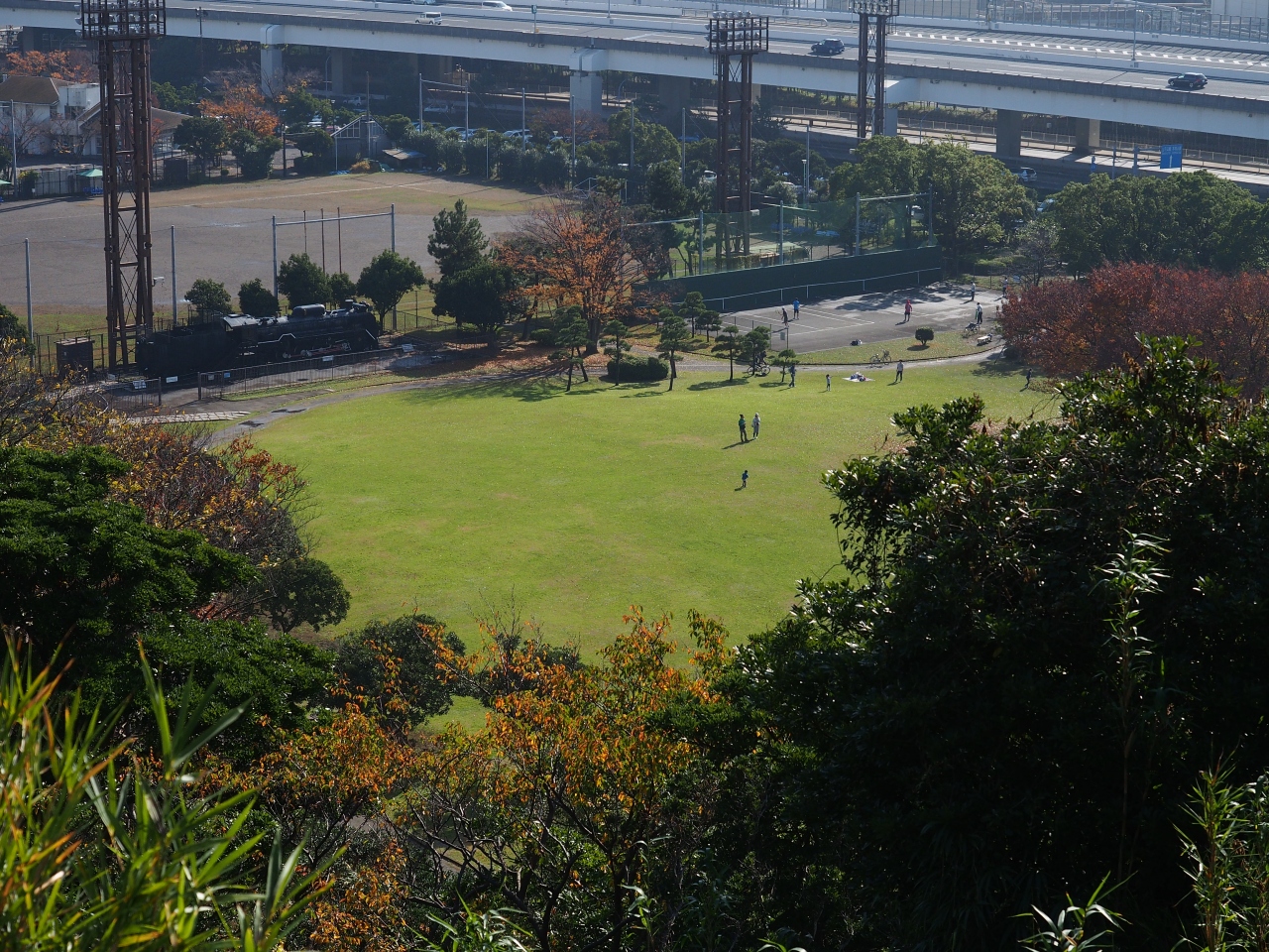 遠く見えるのは本牧地区の工業的な港の風景と高速道路を走る車の姿で、三溪園ができた当時はきっと風光明媚な海が見えたんだろうなぁと思うと時代の流れを感じます。