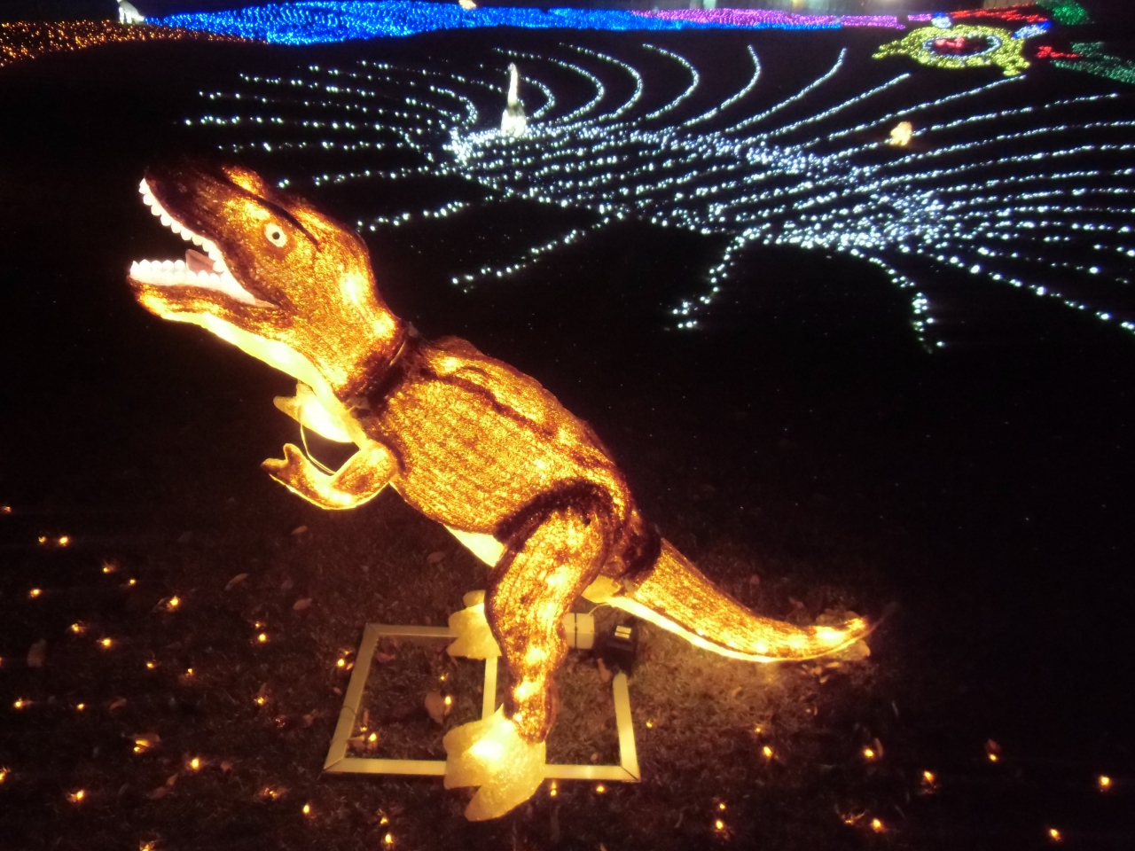 カエルや恐竜などの動物のイルミネーションは子供に人気です。
