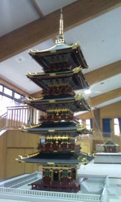 県立だいや川公園内にあるだいや体験館、その館内に東照宮の模型が展示されています。広い室内には五重塔、陽明門、拝殿など東照宮の全体像が目の前に展開します。正面はもちろんのこと左右から裏側からそして上から見ることができます。