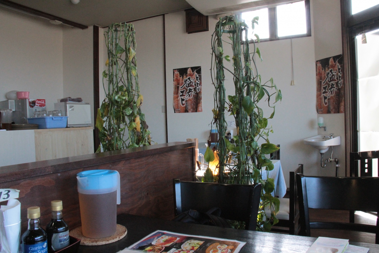 砂丘前の店が立ち並ぶなかで、10時から開いているレストランがありました。