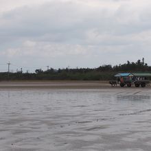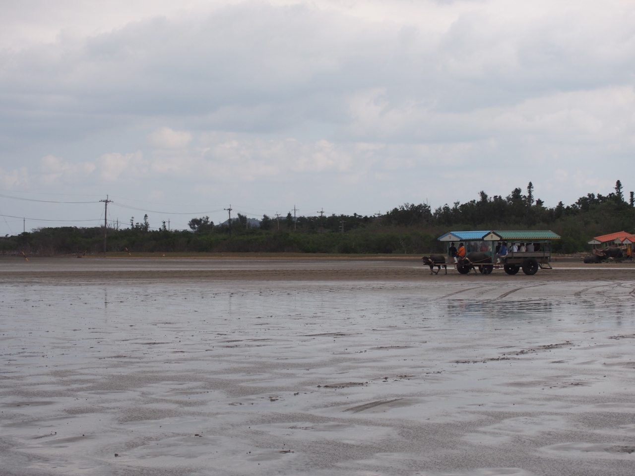 水牛車に揺られながら浅瀬を向こう岸の島まで渡る光景は、