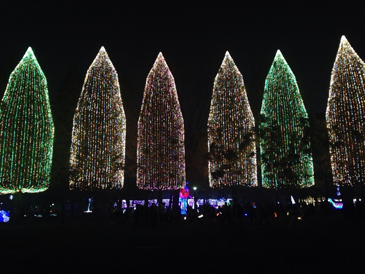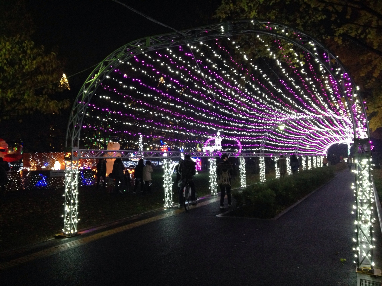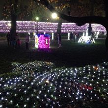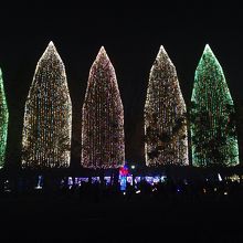 最寄りの東武スカイツリーラインの竹の塚駅から元渕江公園まで真っ直ぐ伸びている道路沿いもイルミネーションできれいなので公園までのバスからの景色もとてもきれいです。
