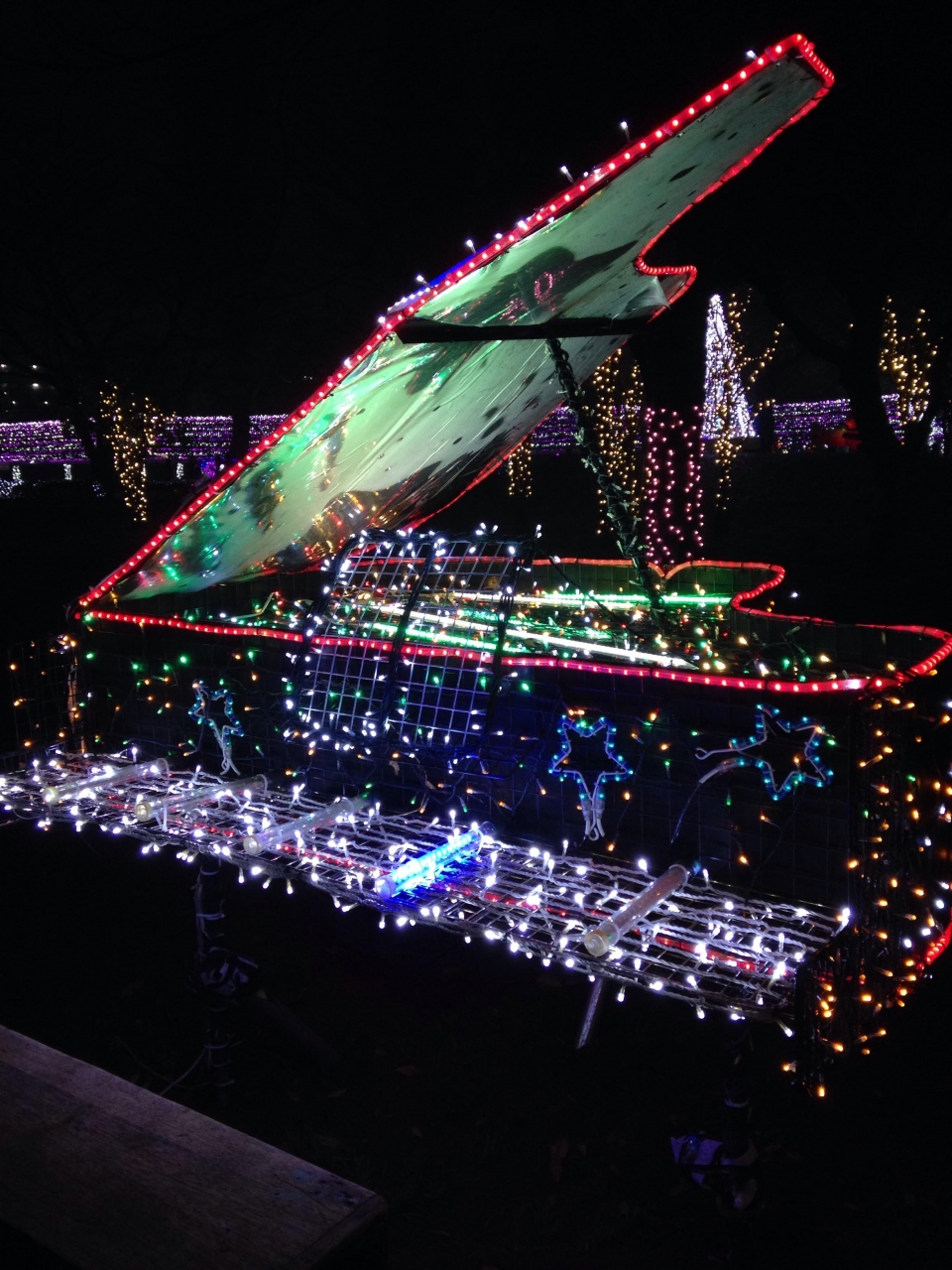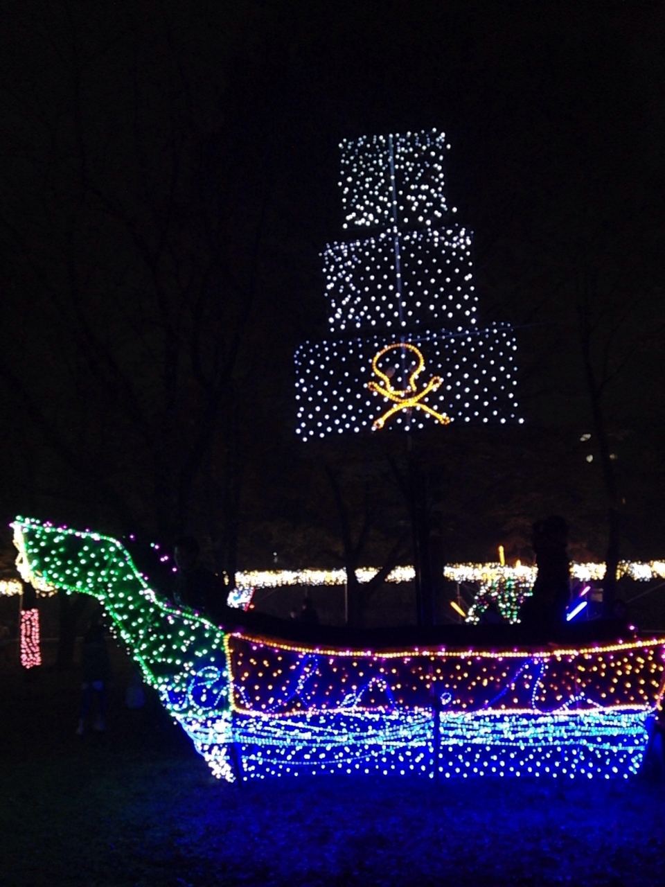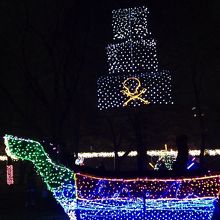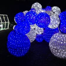 光のトンネルや、ロボット、船、気球のオブジェなどがあり、中に入れたり乗れたり出来ます。