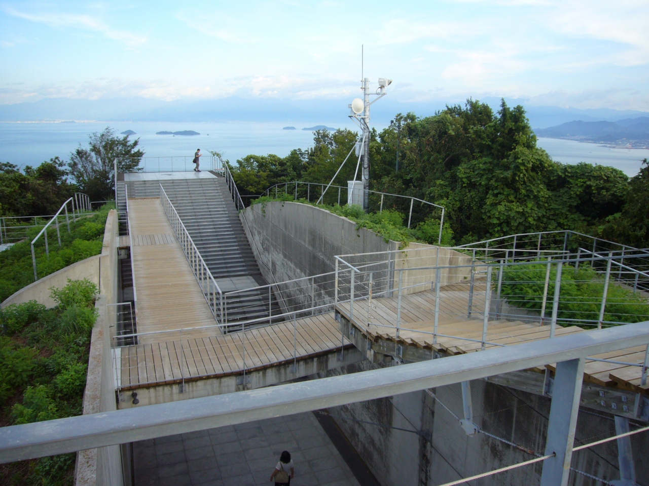 観音像を背負った大きな亀がいたという伝説が名前の由来となっているそうです。駐車場のそばに大きな亀の石像が置いてあり、亀好きには嬉しいスポットでした。頭にコインが供えられていました。また、展望スポットとしても非常に充実しています。階段で複雑につながった展望台からは瀬戸内海を一望できます。どこから眺めるか迷ってしまうほどでした。