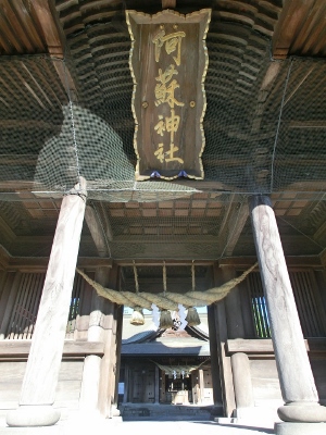 阿蘇神社は珍しい横参道の神社で、参道はお土産やさんはもちろん、湧水が至る所から湧いていて、水基めぐりも楽しめます。水基めぐりをしながら、カフェで休憩したりしながら散策を楽しめます。水基は参道にも沢山ありますが、少し離れた場所にもありますので、歩いて全部回ると結構な時間がかかります。お目当てを決めていくつか巡るのが良さそうです。