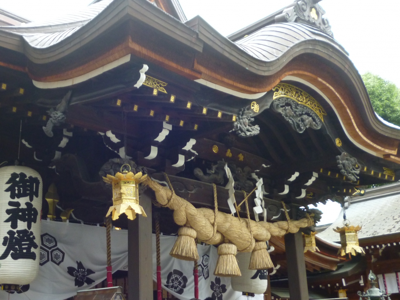 街中にひっそりとある神社で、境内も落ち着いた雰囲気で歴史を感じました。境内には、お祭りの山笠が展示されています。博多のお祭りを見逃した観光客も、ここに来れば雰囲気を味わえます。秋に黄金の実がなるという夫婦銀杏があります。