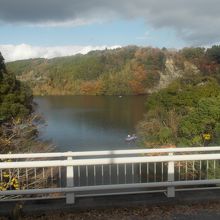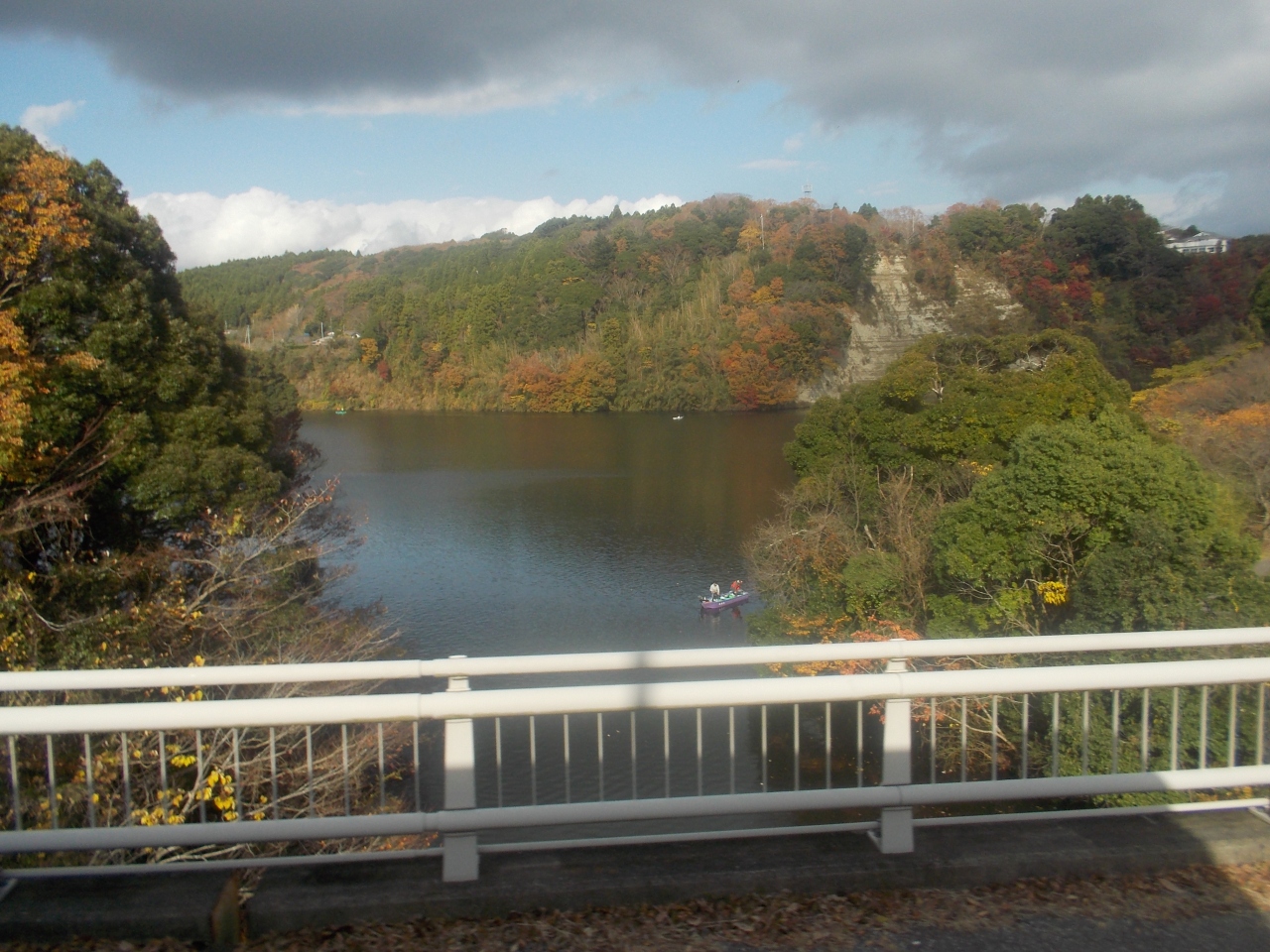 粟又の滝を見た後、バスの窓からみましたが、千葉県では一番大きな湖らしいですが、それほどの大きさは感じませんでした。 紅葉がピークの時には、クルージングやハイキングが楽しめるそうです。 11月下旬が見ごろなそうなので、良い時期に行きました。