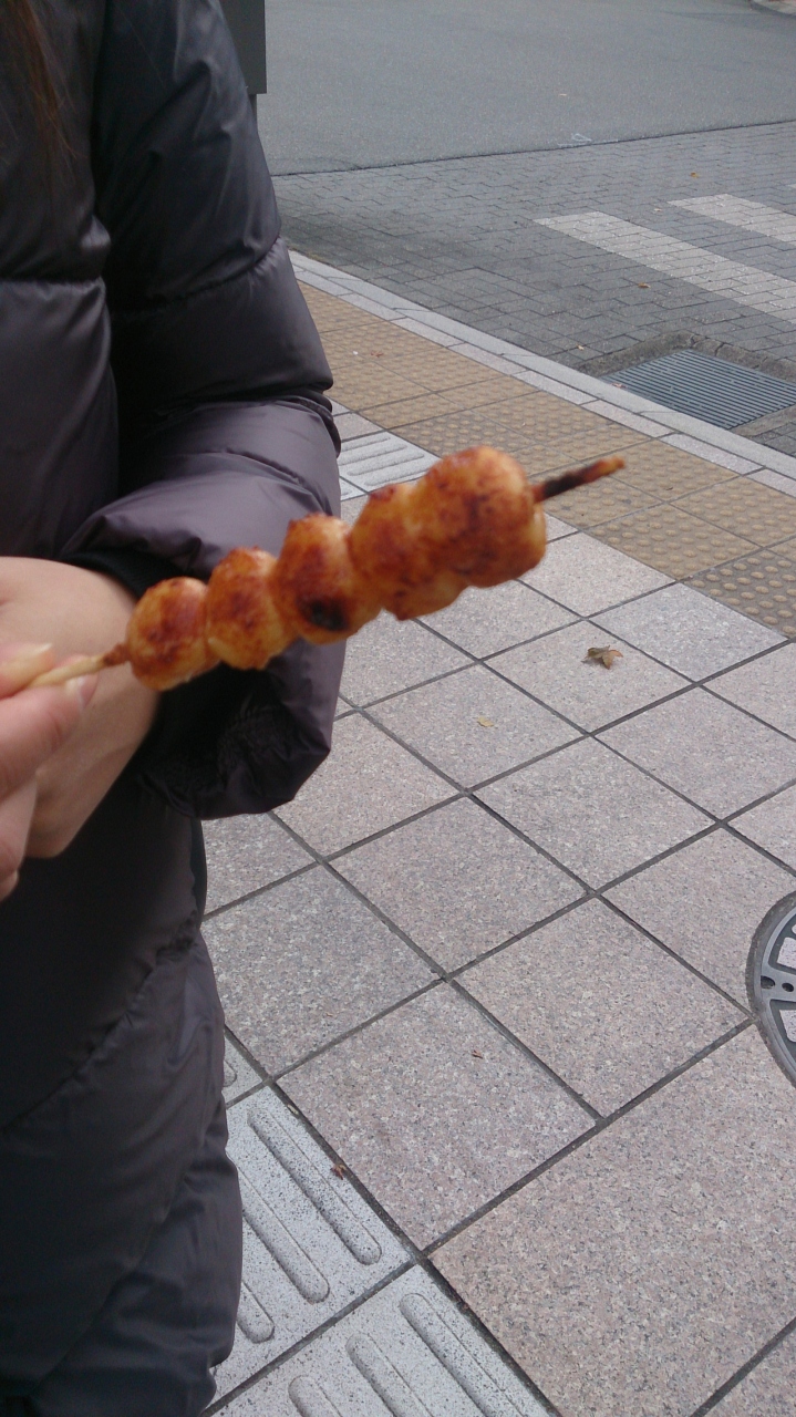 私達の馴染のある、甘辛ダレのみたらし団子とは全く違っており、醤油の風味が良く効いた甘くないみたらし団子でした。