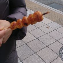 1本80円で、もっちりとした小さな団子が5つ串に刺さっています。