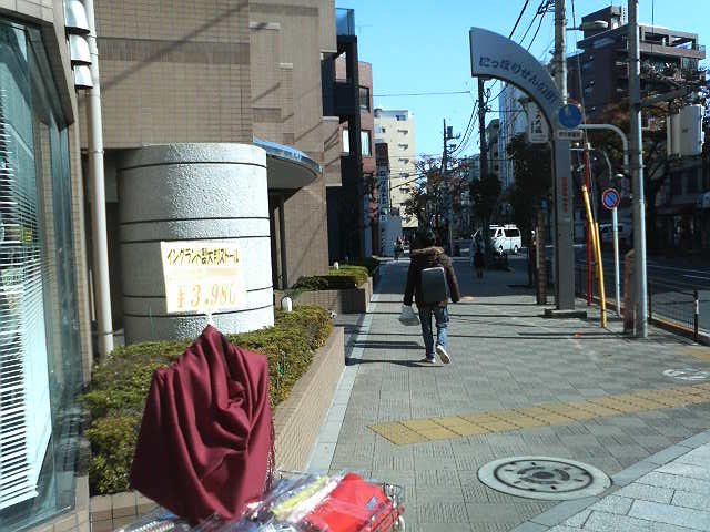 日暮里中央通りの入り口に「にっぽりせんい街」と看板が出ていて、洋服や生地、はぎれなどを扱うお店が両側にずらっと並んでいます。