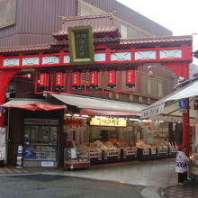 仲見世通会は入口から平間寺の大山門正面まで伸びる100m程の商店街です。川崎大師名物の久寿餅屋の他、トントコトントコと包丁の音で有名な飴屋が軒を並べています。半分以上が食べ物屋さんですが、だるま屋やお土産物屋もあり、めずらしいところで占いのお店もあります。この日は平日で雨でしたので参拝客は少なかったです。なぜか参道の真ん中にはオブジェが何点か置かれていました。
