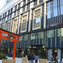 2010年10月に日本橋三越前にオープンした商業施設、3月には「コレド室町1」に続き「コレド室町2」「コレド室町3」が、また10月には隣接する福徳神社が新築されました。黒が基調のビル低層階は、暖簾や行燈をモチーフにしたデザインに統一されています。「江戸の中の江戸」がコピーのようで、遠くから見ると長屋に提灯が飾られているようです。また新築された福徳神社はピカピカですよ。