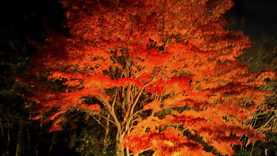 灯篭が適宜設置されており、ライトアップされた紅葉が燃えるように美しかったです。