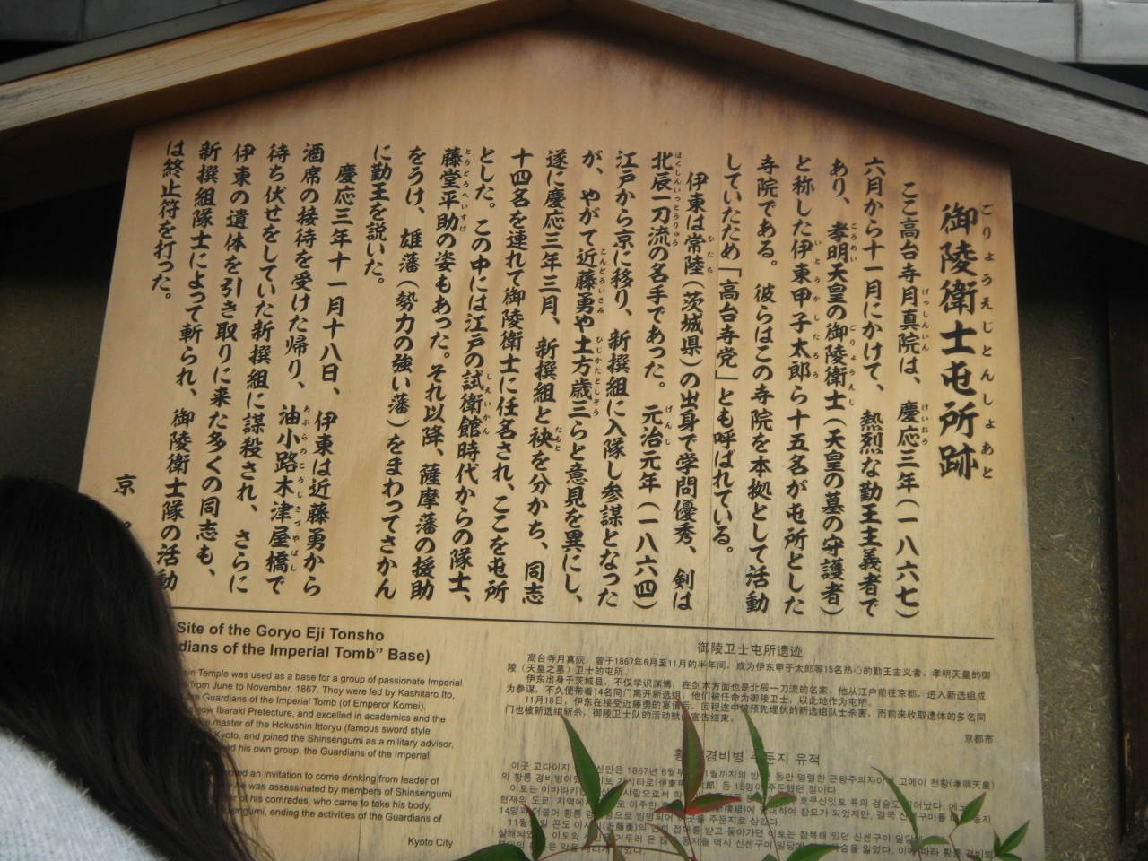 元新撰組だった伊東甲子太郎が新撰組を離れて、同士と共に孝明天皇の御陵衛士として利用していた場所だそうです。残念ながら通常は非公開だそうで、中は柵で囲われ、見ることが出来ませんでした。