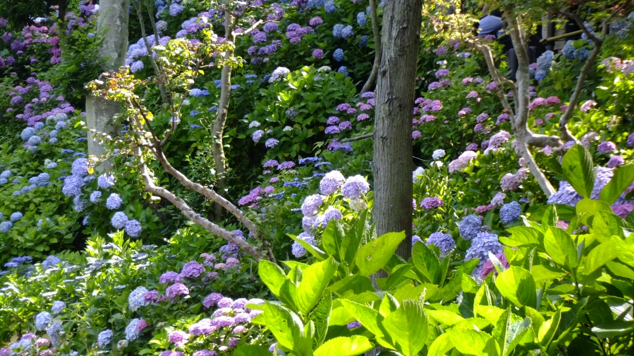 江ノ電に乗っていくと便利でした。電車を降りてお店の間などを通ってすぐです。アジサイの時期に行ったのでとても混雑していました。アジサイの丘を見るために30分以上の待ち時間がありました。しかし、アジサイはとてもきれい。また、景色や観音様もすばらしい。