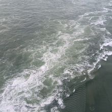 それでも渦の道からの鳴門海峡は迫力満点。ガラス張りになっている床の上を通るだけでもゾクっとします。展望コーナーではたくさんの方が渦を探してジーット海を眺めているので、渦が見えたらきっと歓声が聞こえてどこに渦が出来ているのかが分かるんだろうなと思います。