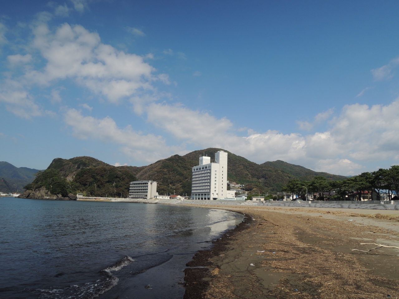 松崎温泉近くにあり便利なビーチです。しかし、ビーチの砂浜の半分ほどはゴロ石が広がり砂浜もグレー系であまりキレイなビーチとは言えない感じでした。また漁港も近く、景観もイマイチです。水質もやや劣る感じでした。レジャーは整っているのでファミリー向きのところですね。