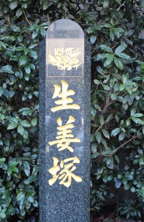芝大神宮生姜塚は、社殿に向かって階段下の左側にあります。なぜここに生姜塚があるのかと不思議に思いましたが、昔はこの辺りに生姜畑が繁茂し、これを供えたり食べたりすると風邪に架かりにくかったようで碑が立てられたようです。