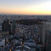 西新宿高層ビル街にあります。新宿駅から歩いていくと10分程度でしょうか。ここは53階に無料の展望ロビーがあります。そんなに広くありませんが、景色は綺麗です。渋谷方面がおすすめで明治神宮の緑が一面に渡っている様子が見れます。