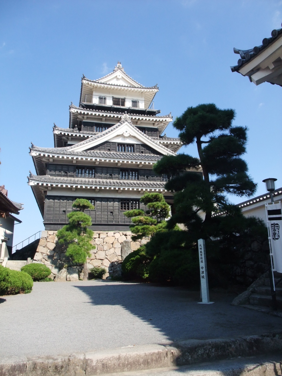 黒田官兵衛が大名に取り立てられて初めて城を築いたのが中津城です。秀吉の天下統一を支え天才軍師と言われた黒田官兵衛は、秀吉の九州平定後、豊前国6郡を拝領し、12万石の大名となって、高瀬川(現・中津川)の河口に川や海を自然の要塞として「中津城」を築きましたが、西に流れる川、北に広がる海を要塞にしたこの「中津城」は、日本3大水城の一つに数えられています。今でも石垣の一部には黒田時代の物が残っているそうです。