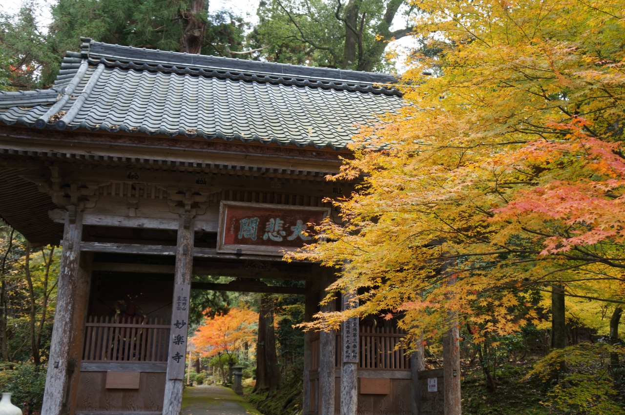 養老3年(718)に行基が開創し、延歴16年(797)に弘法大師が再興したといわれる名刹の妙楽寺。こちらの御本尊の千手観音は千本の手と頭上に二十一の仏を抱き、正面右に菩薩面、左に憤怒面の珍しい像です。