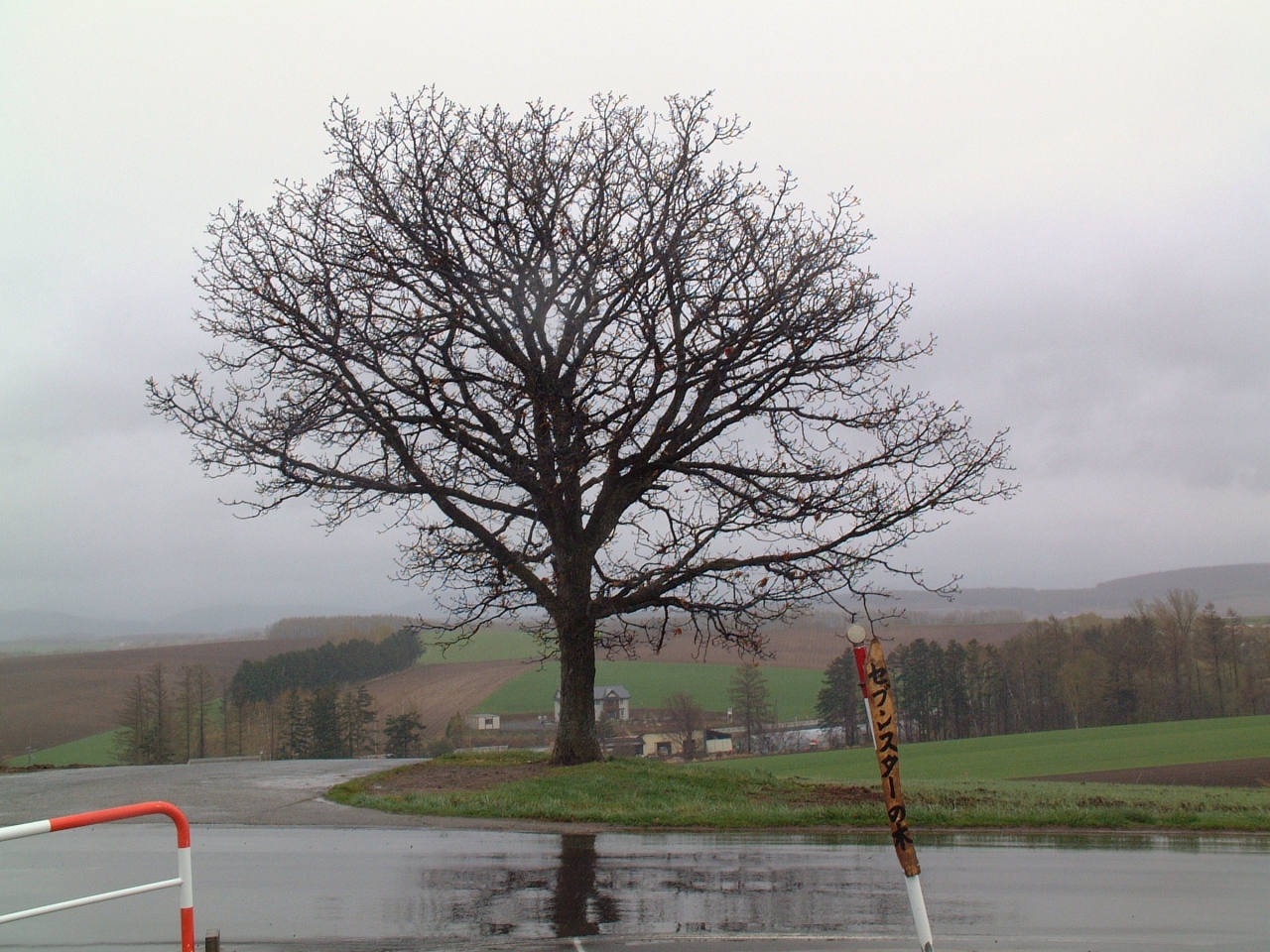 四季彩の丘を見学してからセブンスターの木の見学でした。美瑛の丘に生えているカシワの木です。セブンスターのパッケイジに掲載されて名付けられたそうですが、どう見てもただのカシワの木です。つまらないの一言です。ただ季節が良ければ、ジャガイモの白い花が周り一面に咲き、このカシワの木が映えるとのことでしたが、三月にやってきたので、最悪。私のタバコの銘柄はセブンスターですが、どう考えても褒める言葉が浮かびません。こういう所は、季節を外すと最悪ですね。このあと、ケンとメリーの木に移動との事ですが、期待できそうにありません。説明がなければ、観光地というには、無理があります。