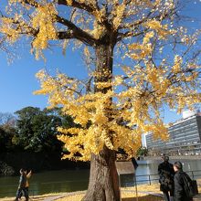 12月の初旬、イチョウの葉が真っ黄色に染まり、冬晴れの青空に映えていた。