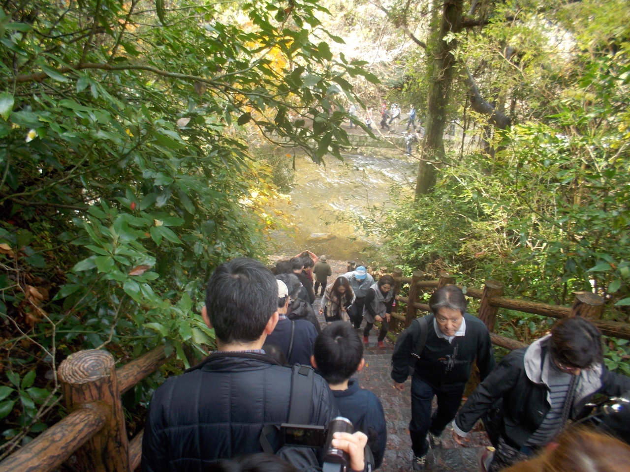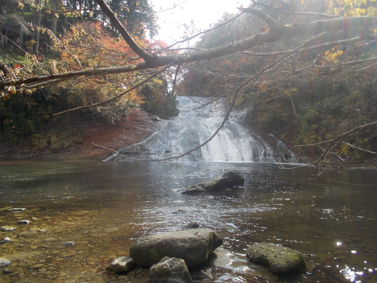 県道から急な階段を降りて行くと、左手に「粟又の滝」があります。 他の場所にある有名な滝に比べれば、高さも幅もあまり大きくはありませんが、房総半島では有名な滝なので、一度は見ておきたいものです。 やはり晩秋の紅葉の時期が一番良い時かもしれません。