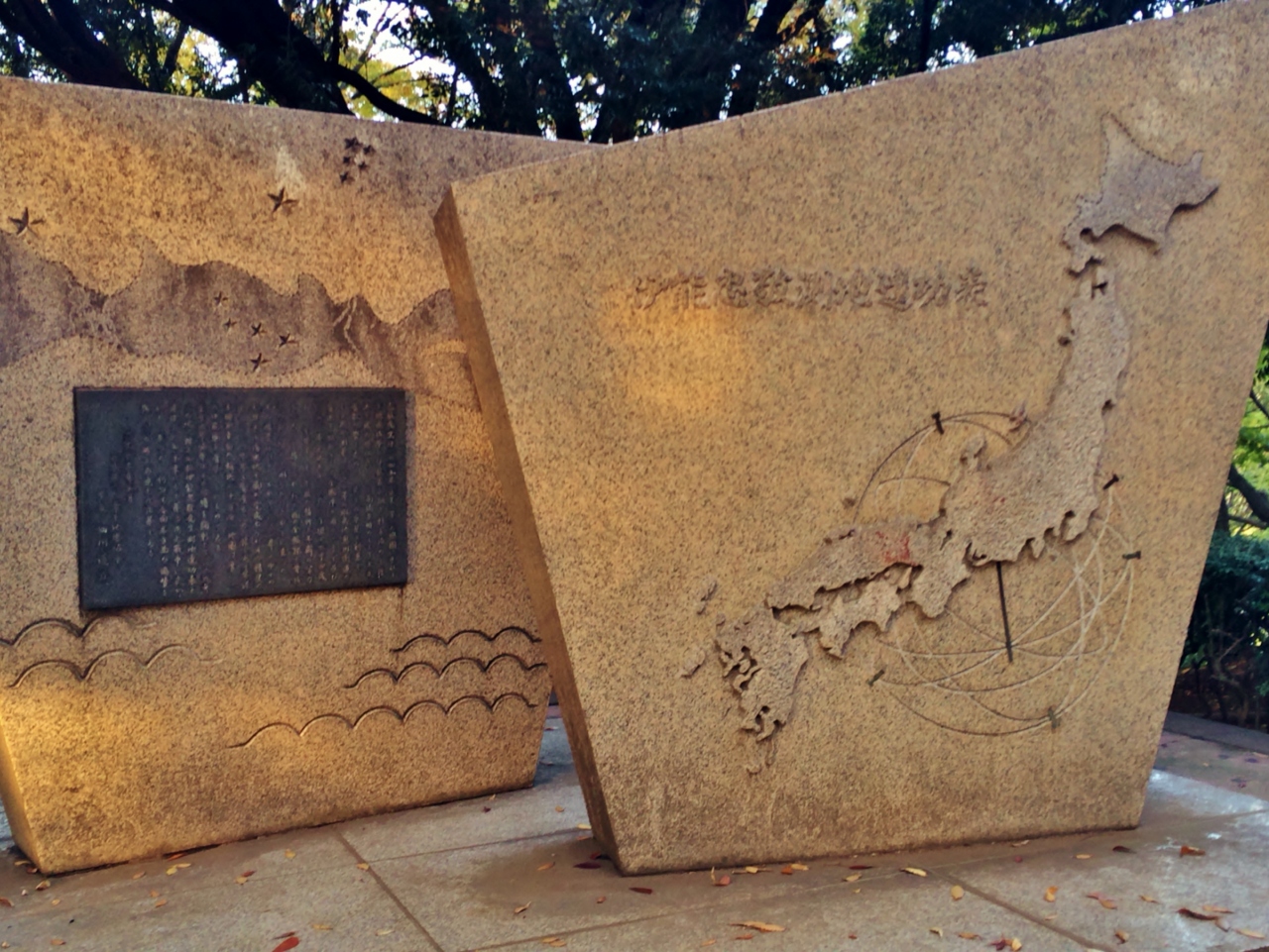 この丘は何と古墳だそうですが、その頂上に伊能忠敬測地遺功表がありました。日本列島を象った石造りのモニュメントです。